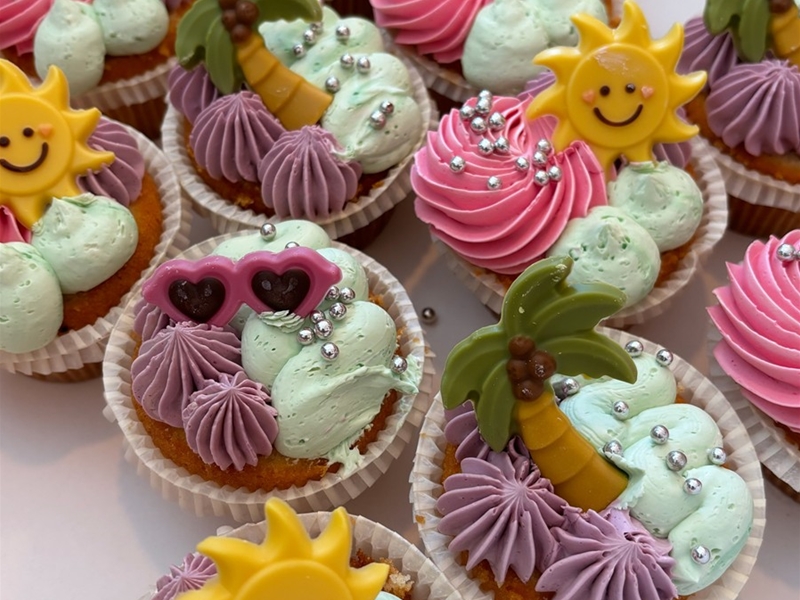 Deze feestelijke cupcakes worden op maat gemaakt. Ze kunnen daarom alleen telefonisch of in de winkel tijdens openingstijden besteld worden.